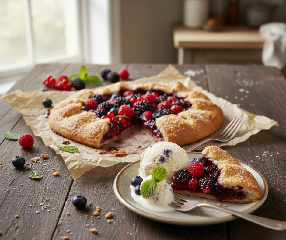 Galette od šumskog voća idealan je desert za one trenutke kada želite nešto domaće, ali ne želite provesti sate u kuhinji. To je kolač koji se reže nepravilno, jede rukama ako treba i dijeli bez puno ceremonije. Poslužuje se topao ili hladan, sam ili uz sladoled, i svaki put funkcionira jednako dobro.