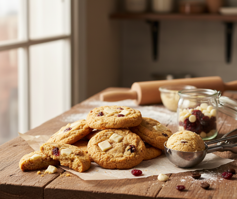 Zamisli ovo: vani je sivo, dan je dug, a kuća traži nešto slatko. Pećnica se zagrijava, maslac omekšava, a miris bijele čokolade već obećava da će sve biti u redu. Brusnice su tu da poremete slatku rutinu i daju onaj mali kiseli kontrast koji čini razliku između “dobrog keksa” i keksa koji se prepisuje u bilježnicu. To je kombinacija koja ima smisla, i okusom i karakterom.