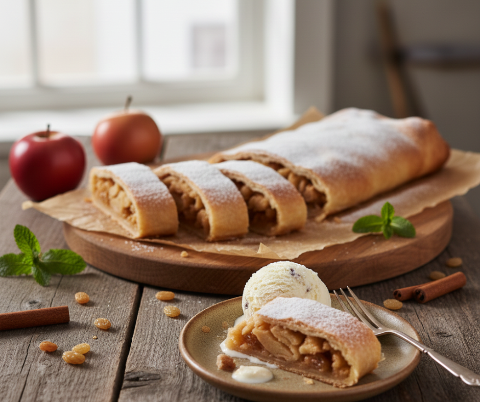 Štrudla s jabukama i cimetom podsjeća da u jednostavnosti često leži čarolija. Nije potrebno previše, samo kvalitetni sastojci, malo pažnje pri pripremi i želja za dijeljenjem ovog malog užitka s drugima. Svaki komadić donosi kombinaciju hrskavog tijesta i slatko-kiselog nadjeva koja osvaja sve oko stola.