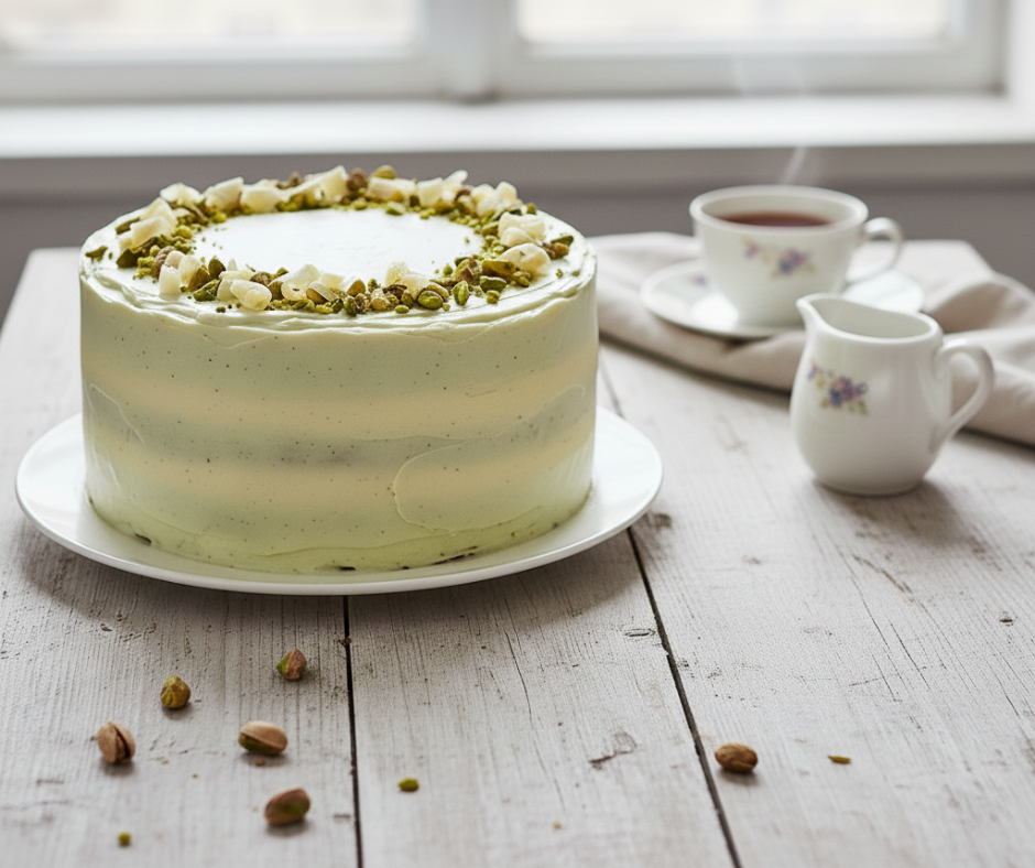 Zamislite miris svježe pečenog biskvita i bogatu kremu koja se topi na jeziku. Upravo takva je naša torta od pistacija i bijele čokolade, desert koji kombinira profinjeni okus pistacija s nježnom slatkoćom bijele čokolade. Svaki sloj skriva mali luksuz: mekan biskvit, kremasta tekstura i zlatni, hrskavi detalji na vrhu.